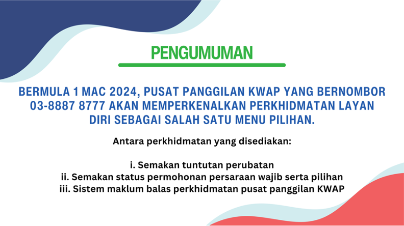 Untuk maklumat dan perhubungan awam, sila e-mel kepada strategic.comms@kwap.okie.my atau hubungi talian utama kami di +603 2174 8000.